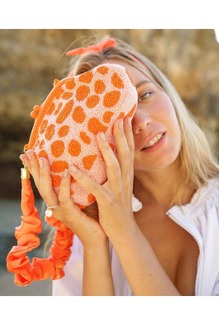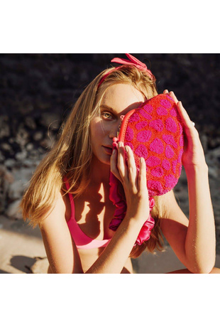 The Marigold Bag — a crochet raffia clutch bag, handcrafted with luxurious Italian viscose raffia. Everything on this bag, from the first stitch to the last assembly, is entirely made by hand.