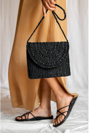 Raffia Clutch in Black