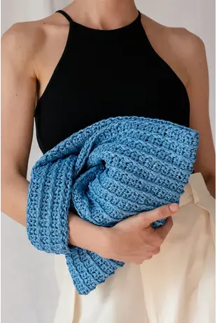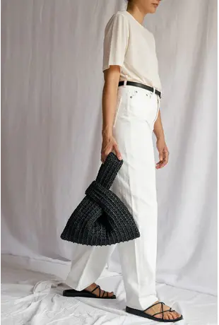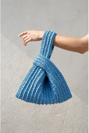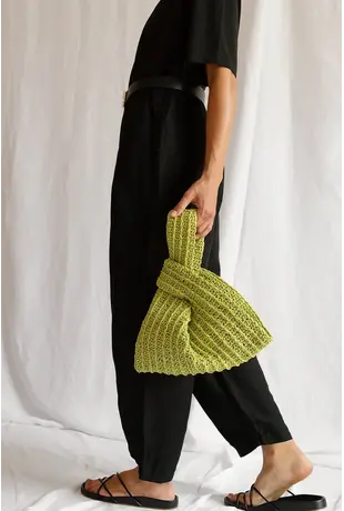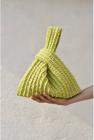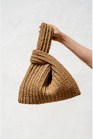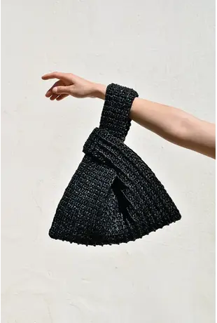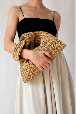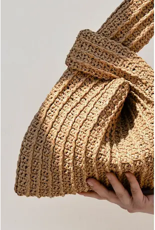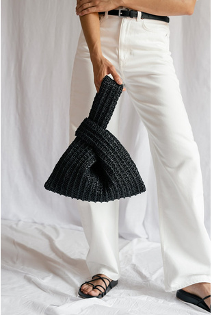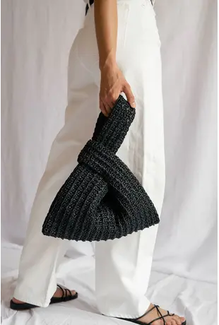 The Raffia Knot Bag — expertly handcrafted from the finest Italian viscose raffia, a plant-based and fully biodegradable fiber, this crochet handbag will add style to any outfit.
