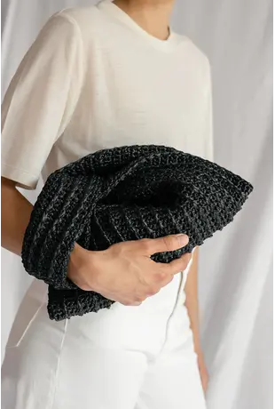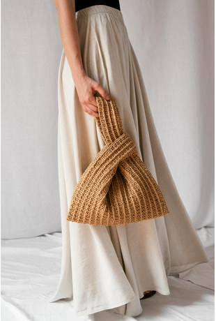 Inspired by the classic Japanese knot bag, distinguished by its asymmetrical handles that slip through each other to shape a knot handle, we have created this timeless piece in a minimal form and with rich texture.