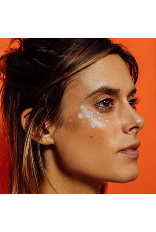 Before applying your sparkles we suggest you to apply a natural cream (brand is indifferent) for better fixation of the glitter.