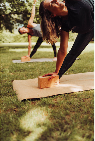 Two yoga blocks made of natural Portuguese cork & recycled rubber. They're a useful & ecological tool to support your daily yoga practice!