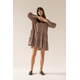 Anais dress light chocolate in a loose cut with ruffles. The dress has a cut-off buttoned shirt top and a stand-up collar, a slightly dropped shoulder, sleeves with a longer cuff fastened with 3 buttons. The dress can be worn let loose or tied with a belt, it is adapted to wear an open neckline. The dress is made of fleshy viscose in a deep sea green color. All buttons coated with fabric, viscose lining.