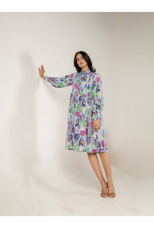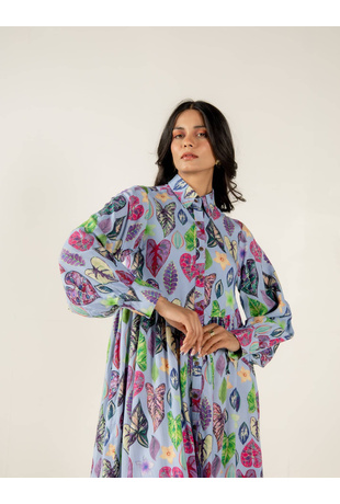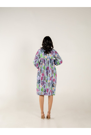 • A full sleeve shirt dress with gathers on the waist to give it a beautiful flare