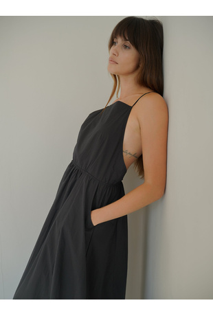 Crafted from an organic cotton poplin, the Calliope Backless Dress has a simple and timeless design. This piece features a square neck with thin straps, hidden side pockets, and an open back.