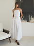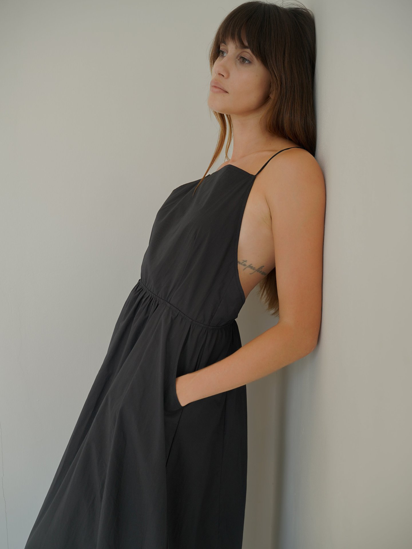 Crafted from an organic cotton poplin, the Calliope Backless Dress has a simple and timeless design. This piece features a square neck with thin straps, hidden side pockets, and an open back.