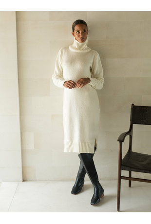 The Iman Sweater Dress in exceptionally soft and consciously sourced mohair is an enigma serving as a barely there layer or a statement when worn alone. Designed to be worn belted or loose. Pairs well with the Iman Knit Coat and the Berner Scarf.