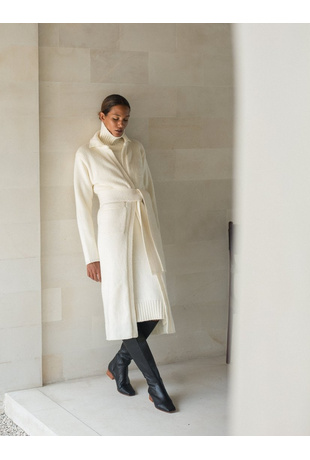 The Iman Sweater Dress in exceptionally soft and consciously sourced mohair is an enigma serving as a barely there layer or a statement when worn alone. Designed to be worn belted or loose. Pairs well with the Iman Knit Coat and the Berner Scarf.