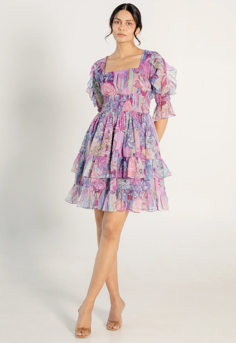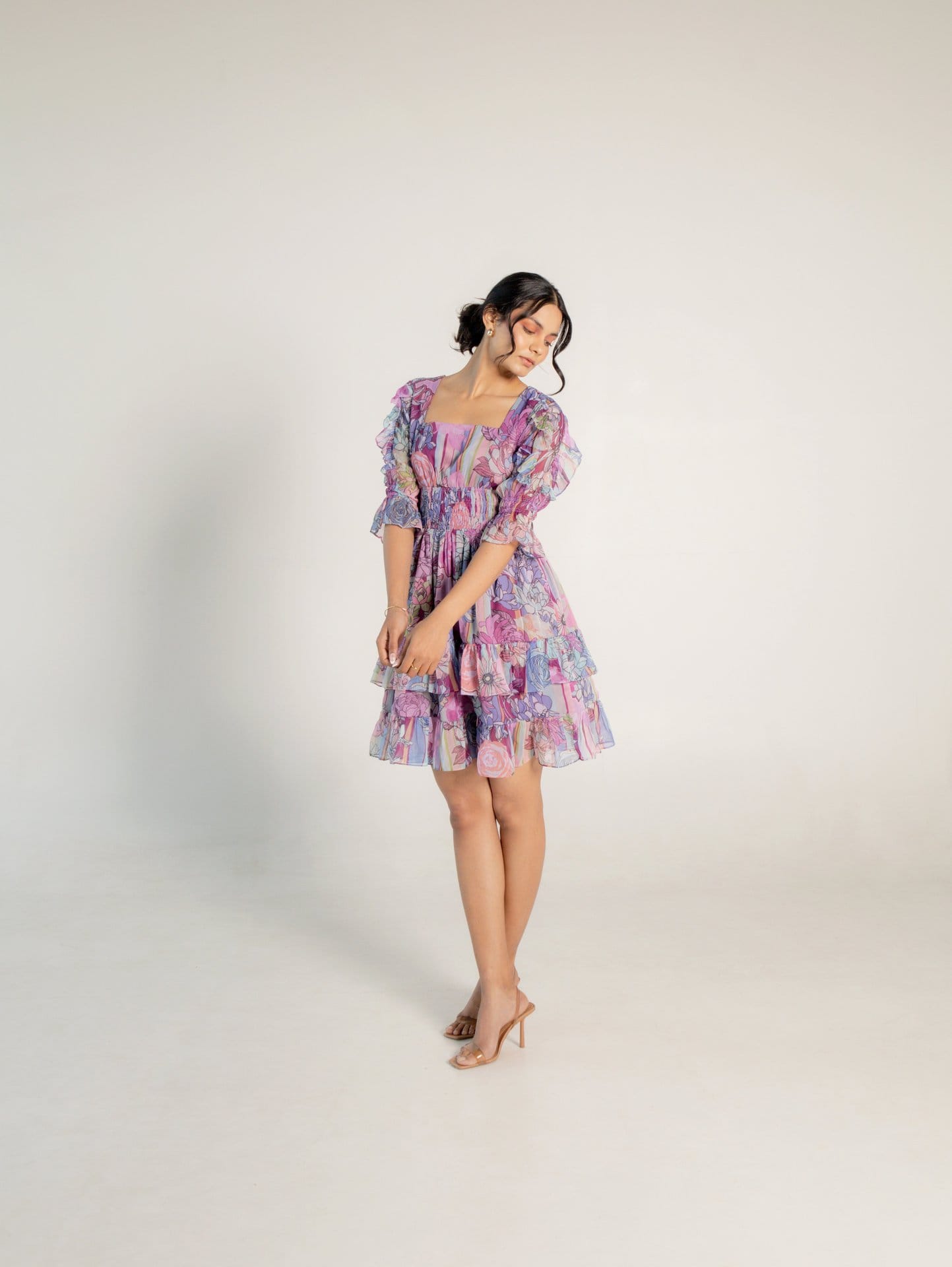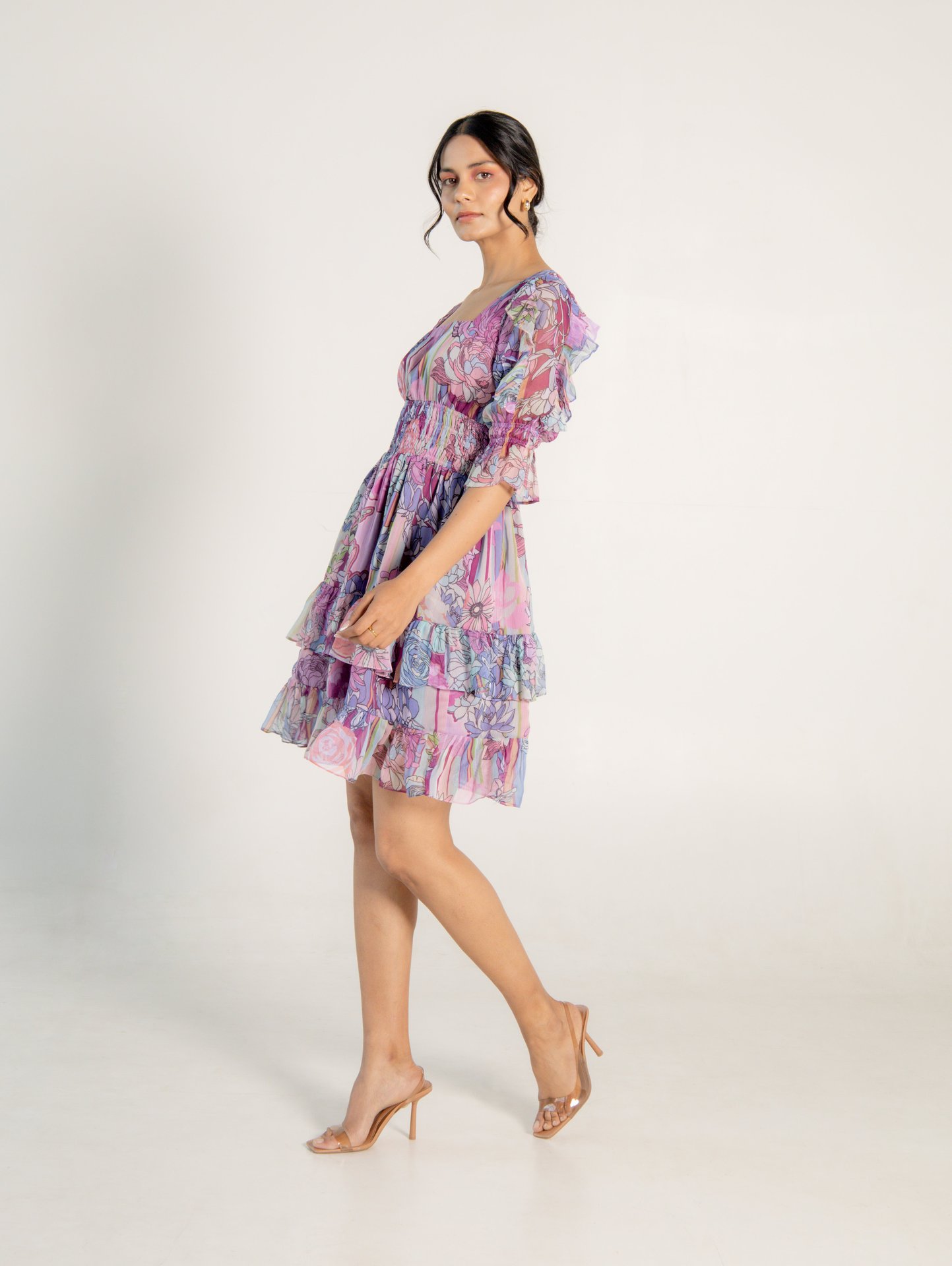 Floral Mini Dress Longsleeve Chiffon