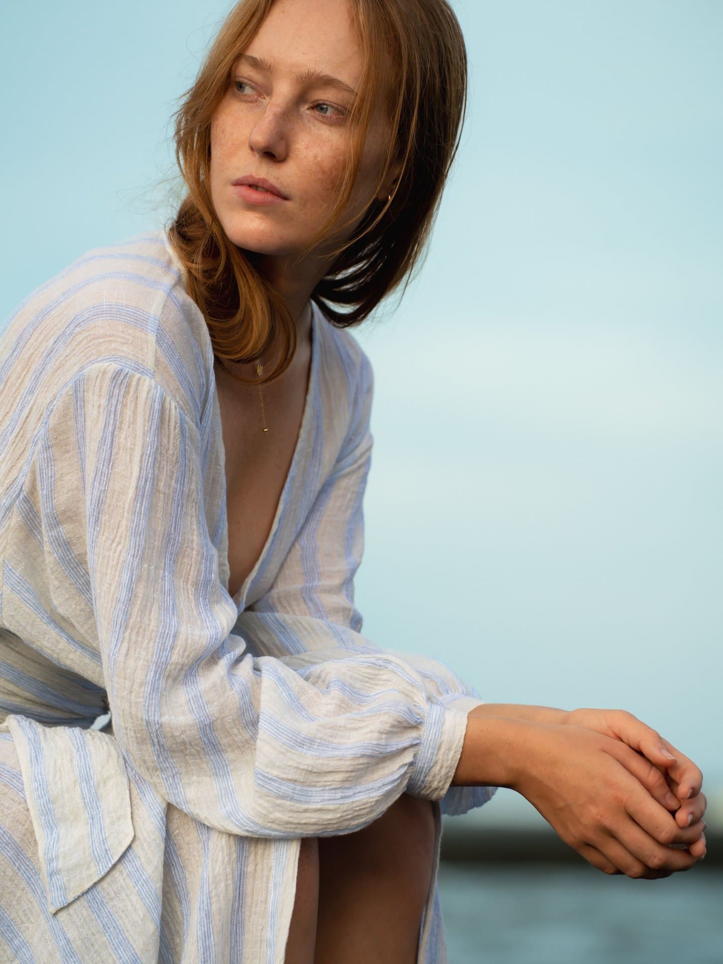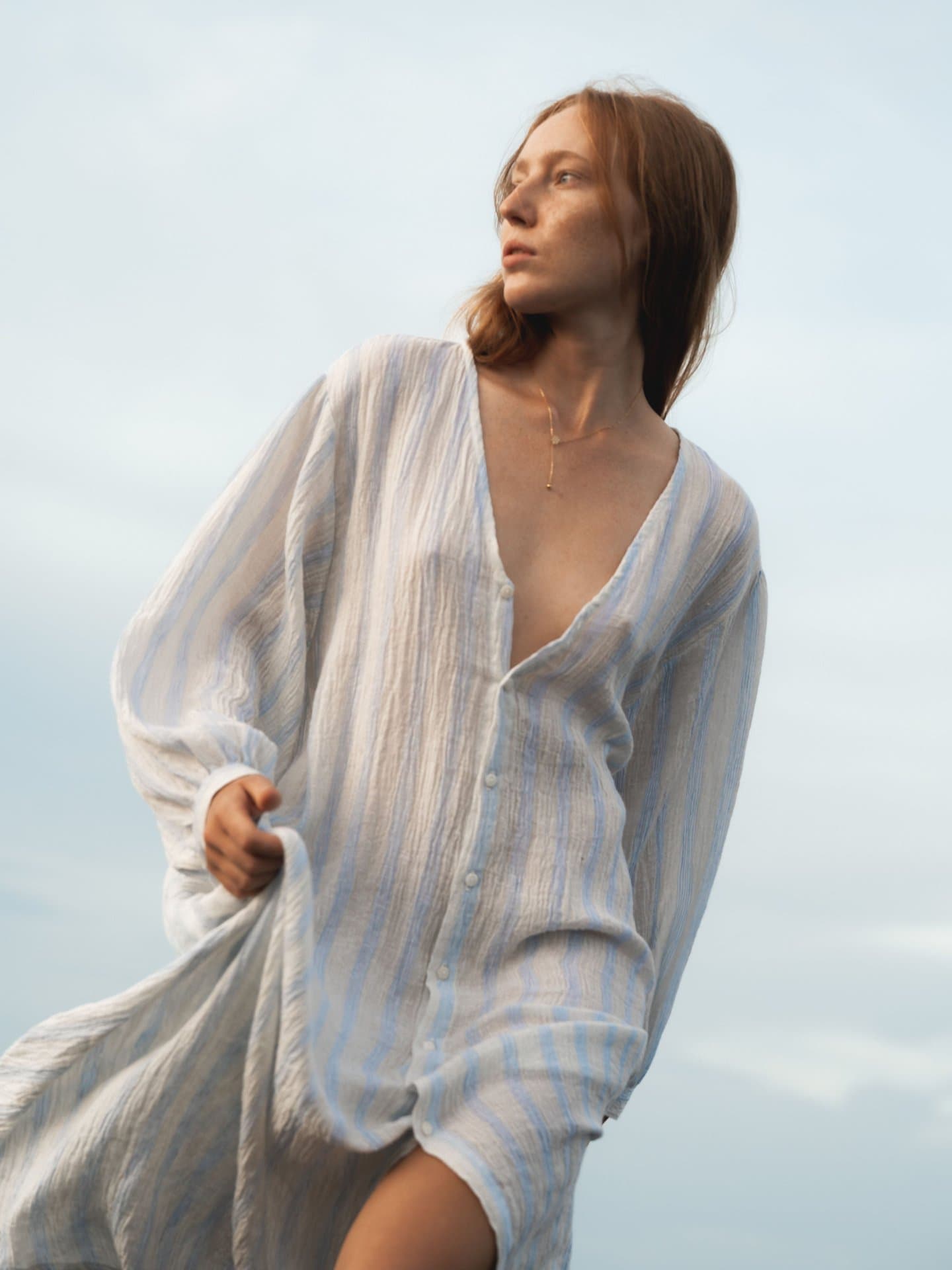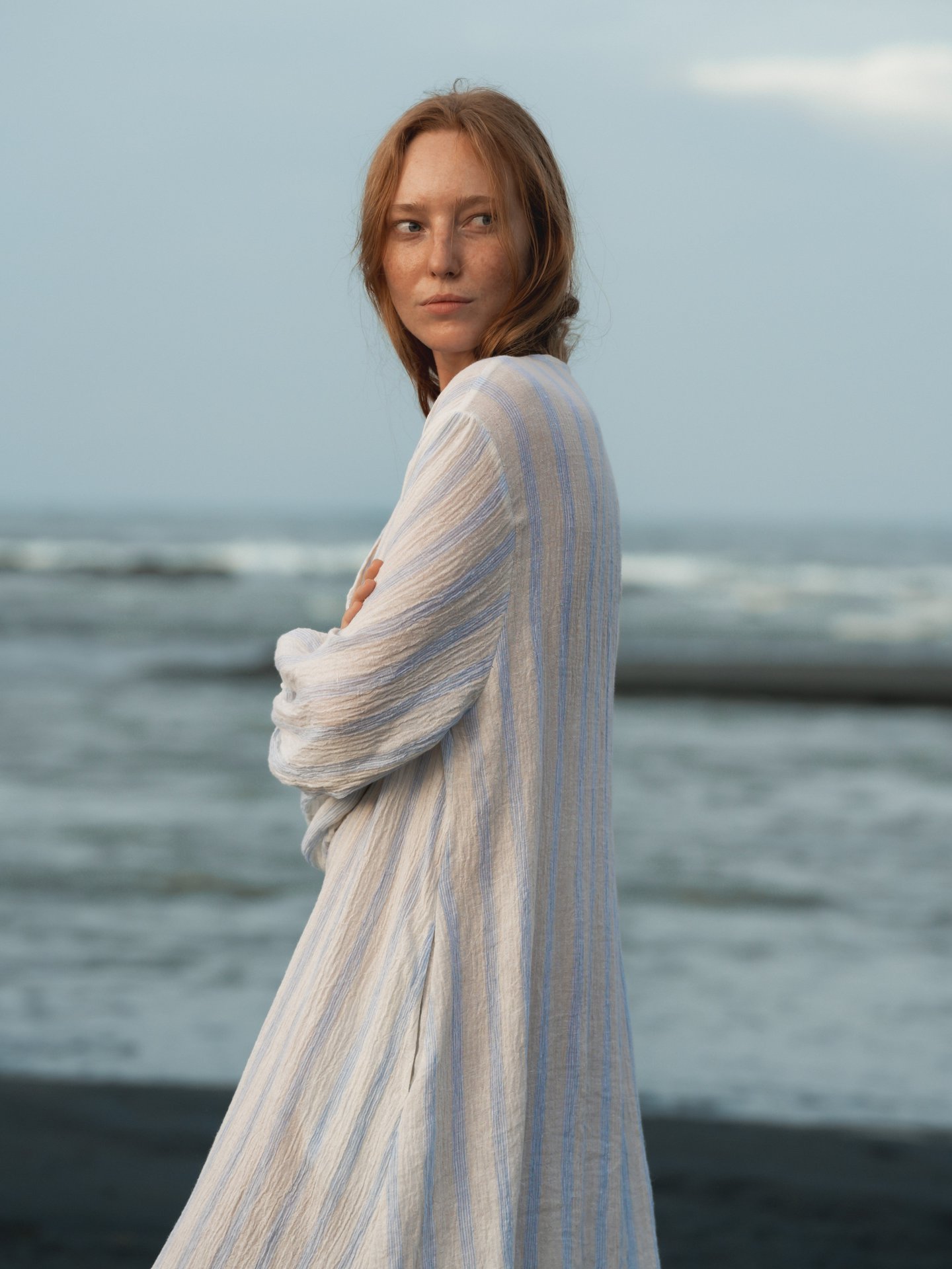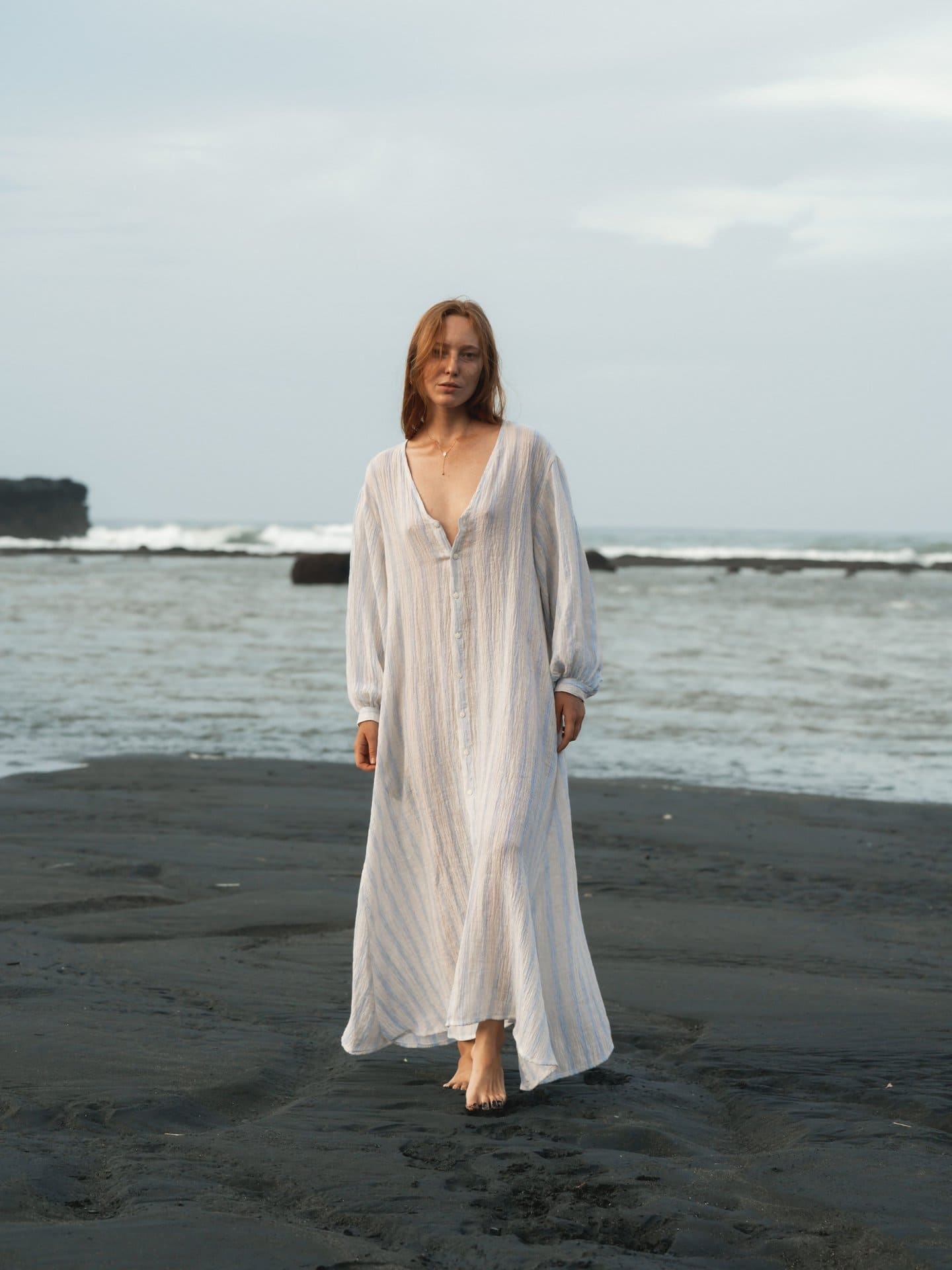 Comfortable and elegant warm weather staple. Designed for casual daytime dressing at the beach and boho chic evening attire alike. Wear belted or without.