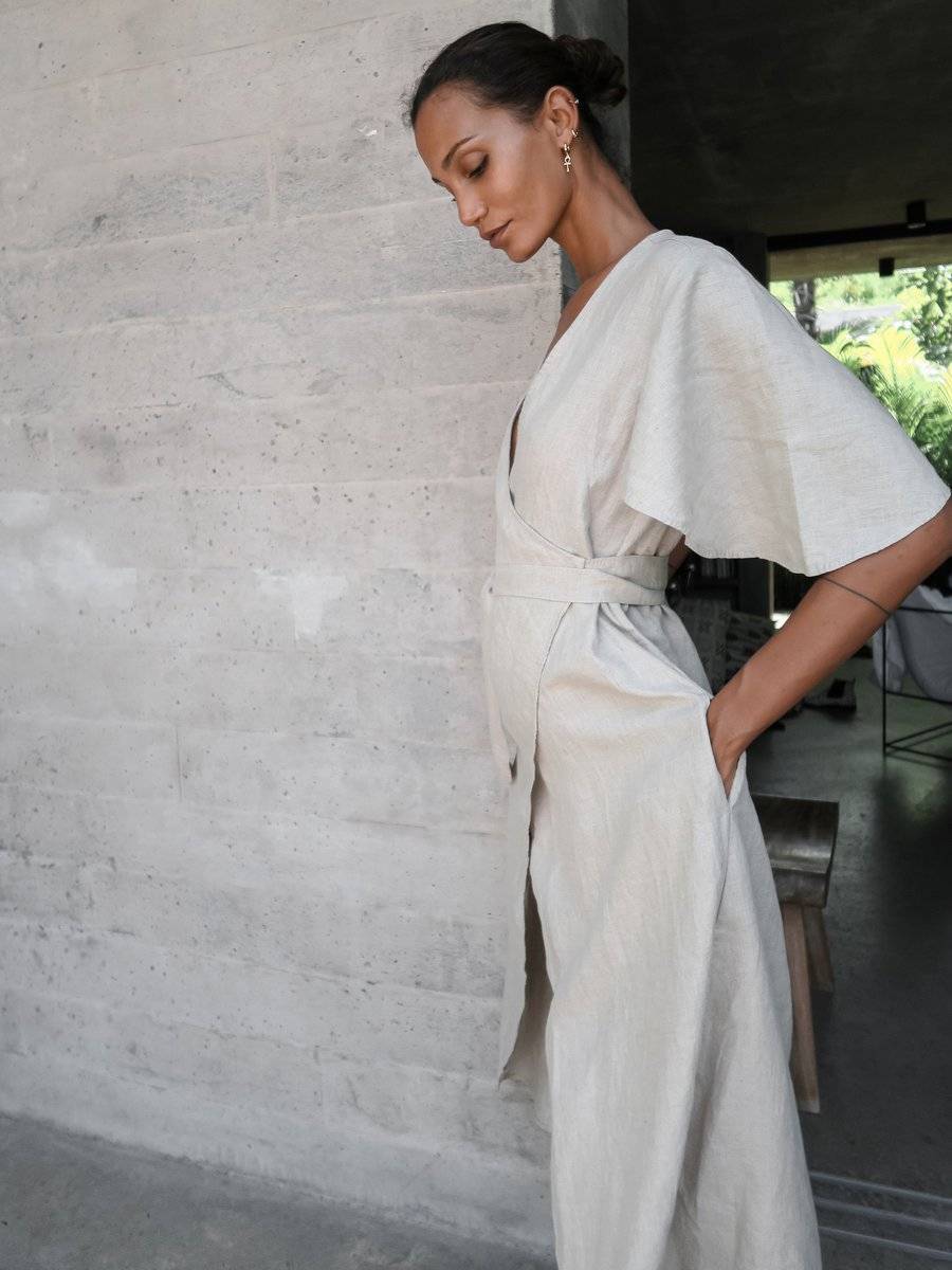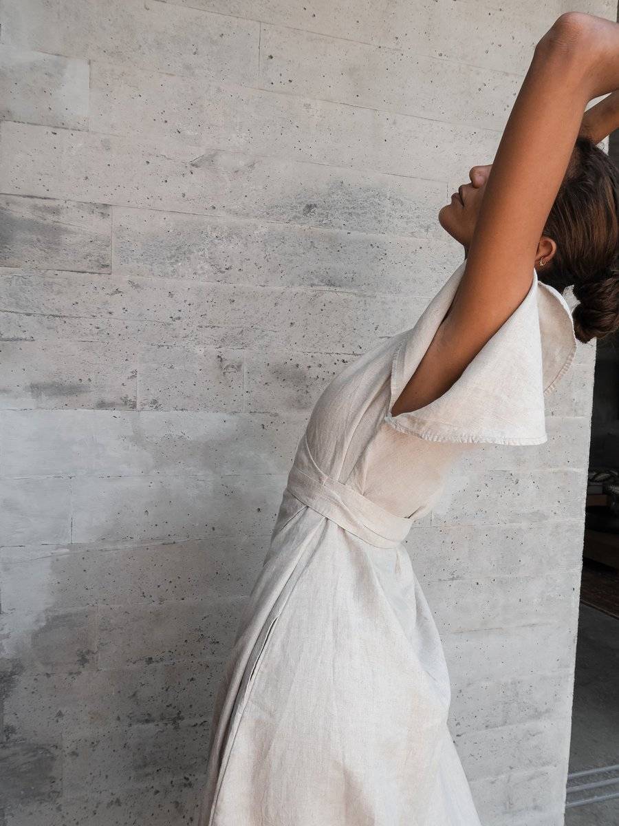 Linen Wrap Dress in Beige - Dhalia