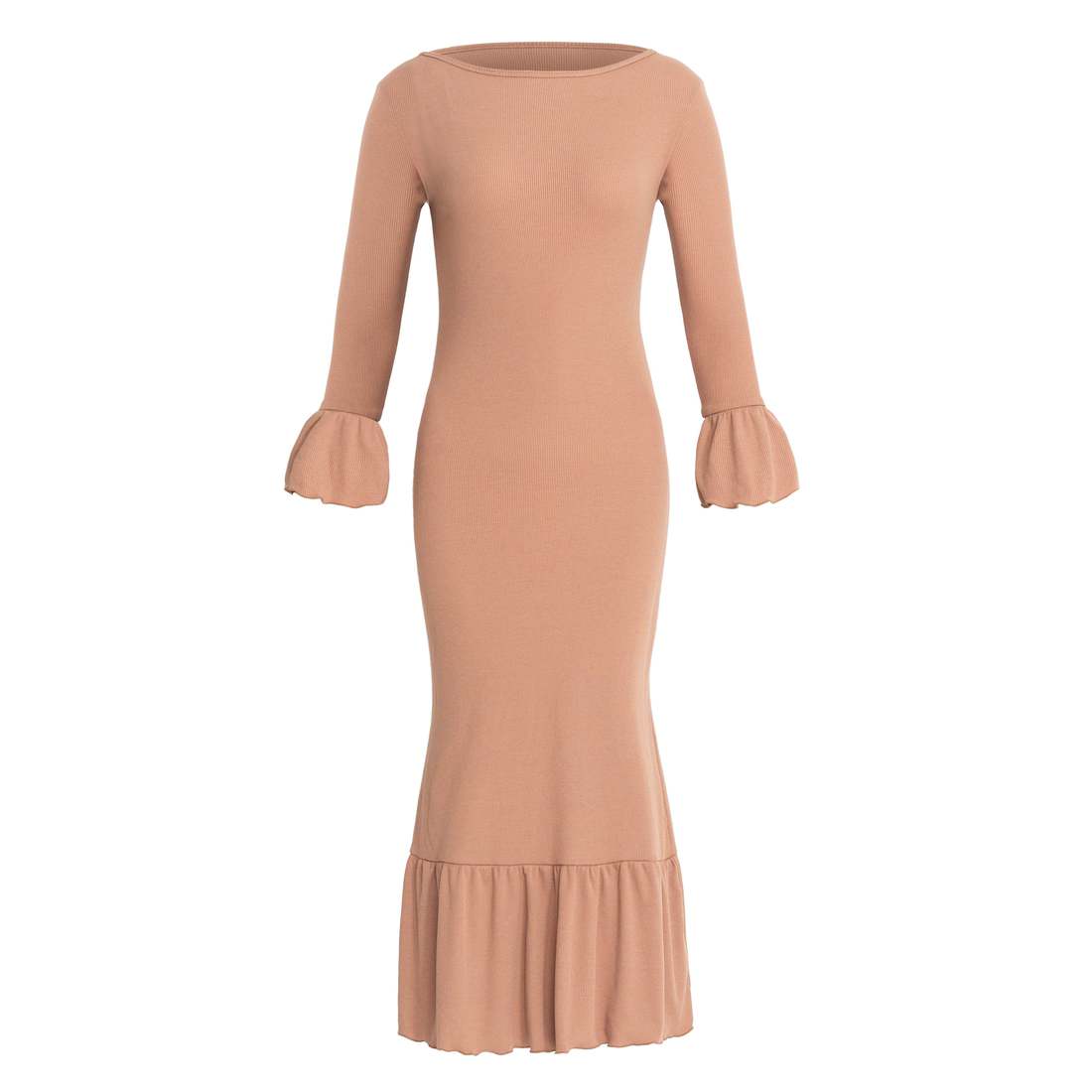Ruffle Rib Dress, In Camel Brown
