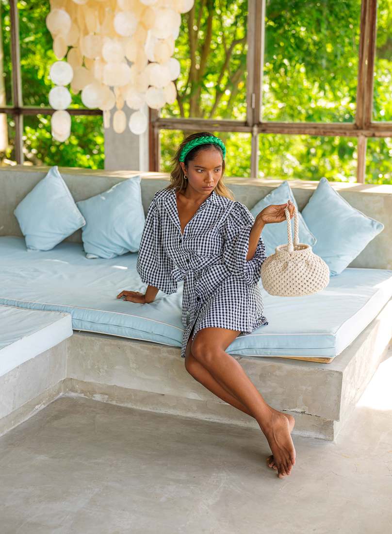 The Meghan mini dress is a sweet silhouette, made with voluminous medium-length puff sleeves. This dress is cut in a light & airy 100% cotton woven gingham fabric featuring a chic short skirt with bow-detailing and removable waist belt. Our Meghan mini dress is the soul of every perfect picnic session.