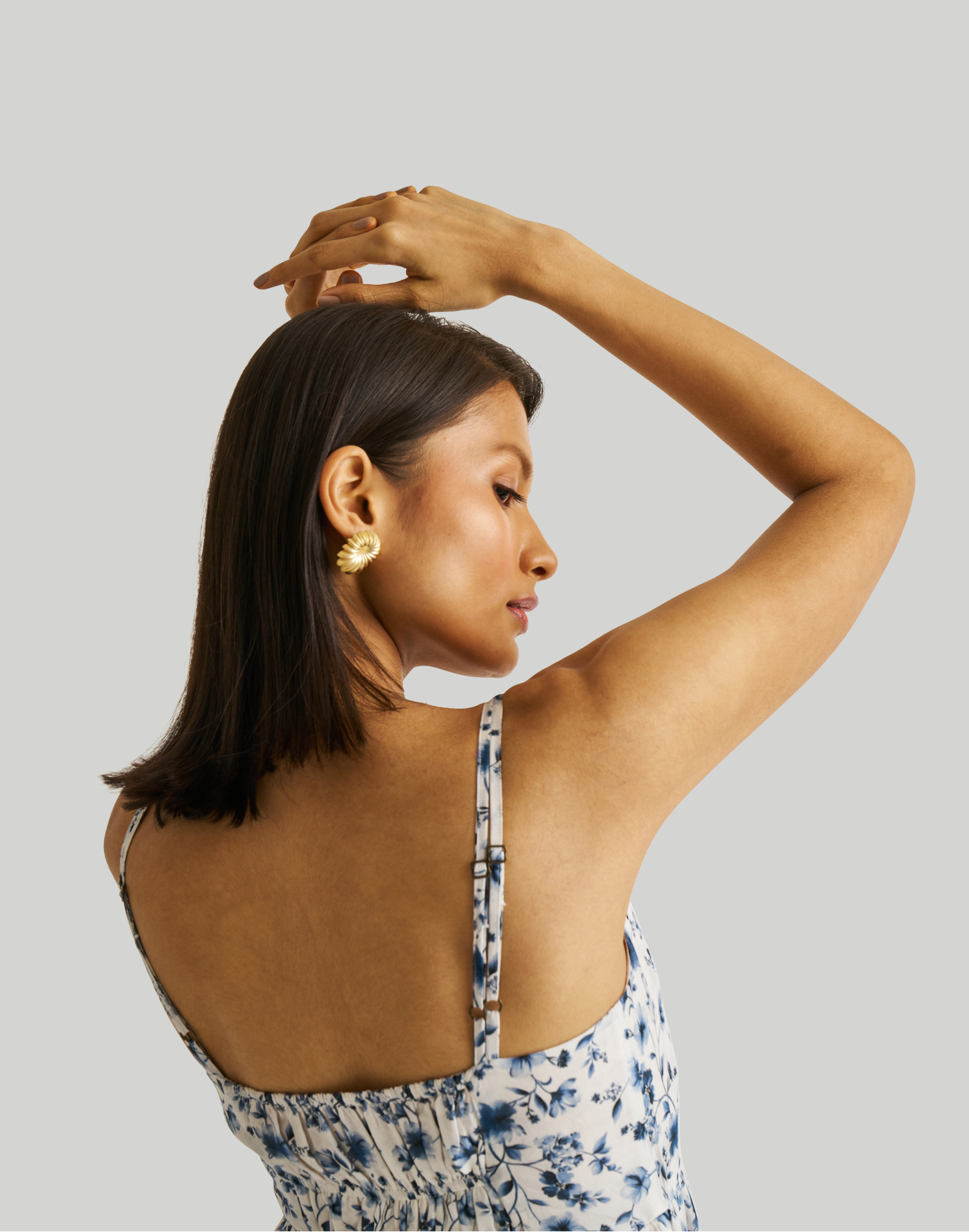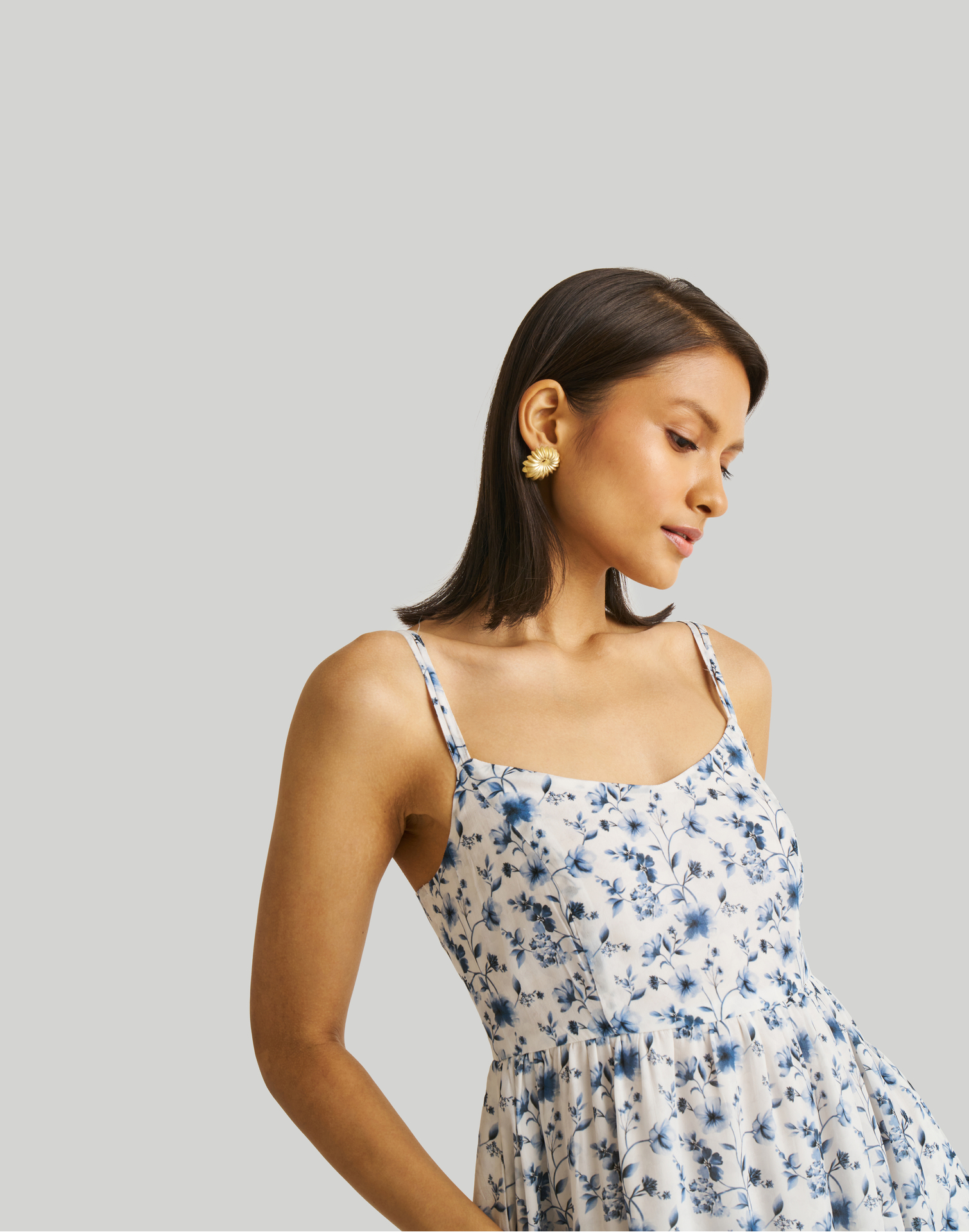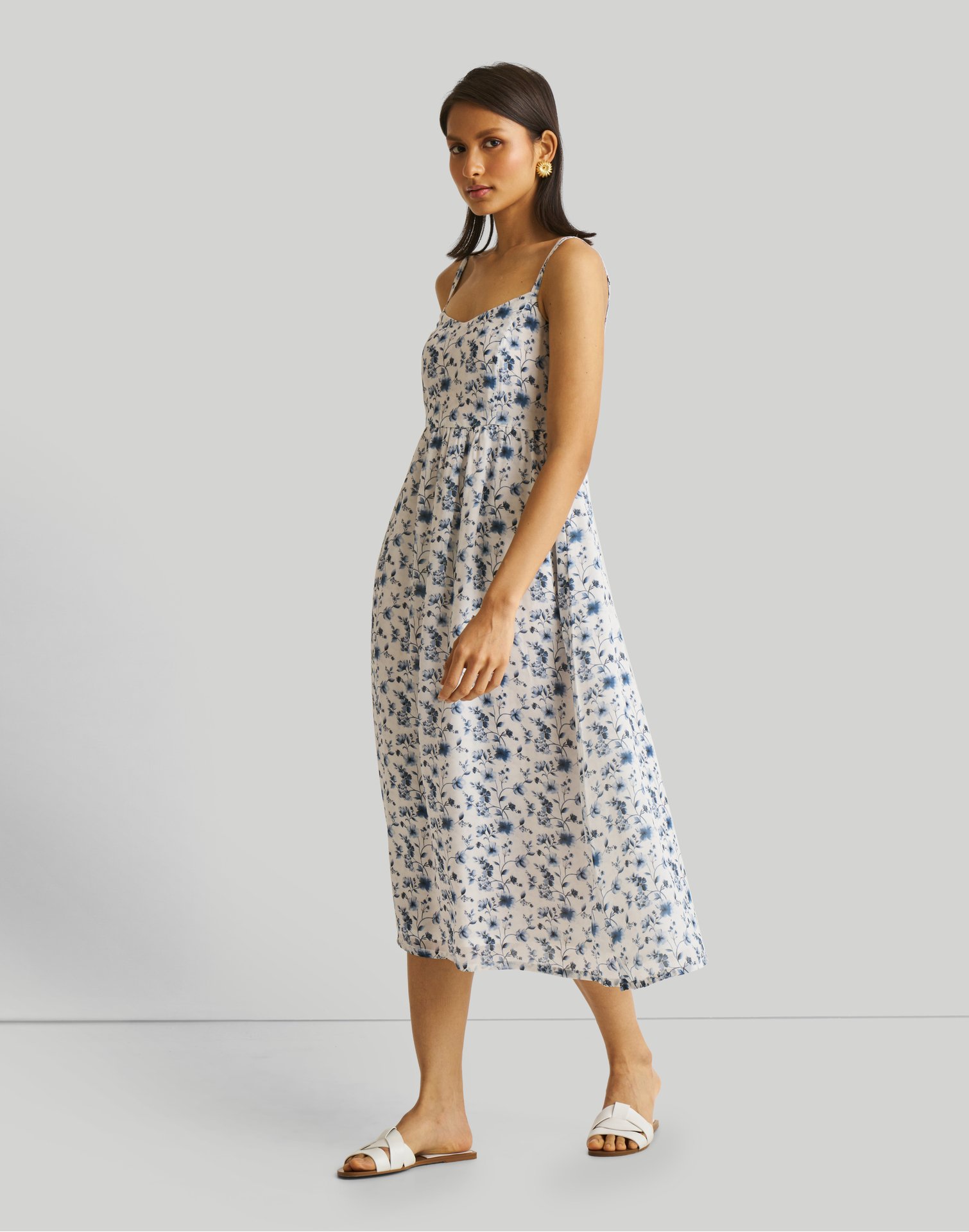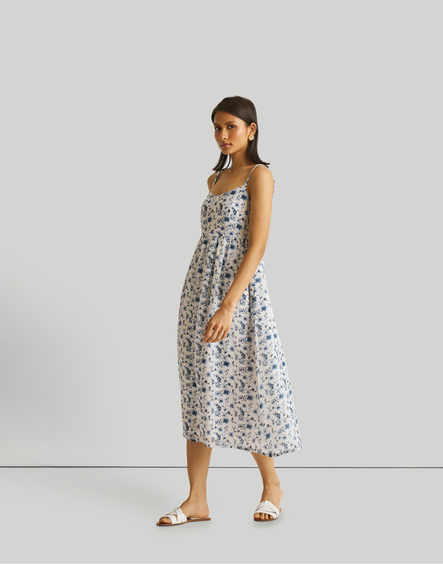 Strappy Gathered Blue Floral Midi Dress