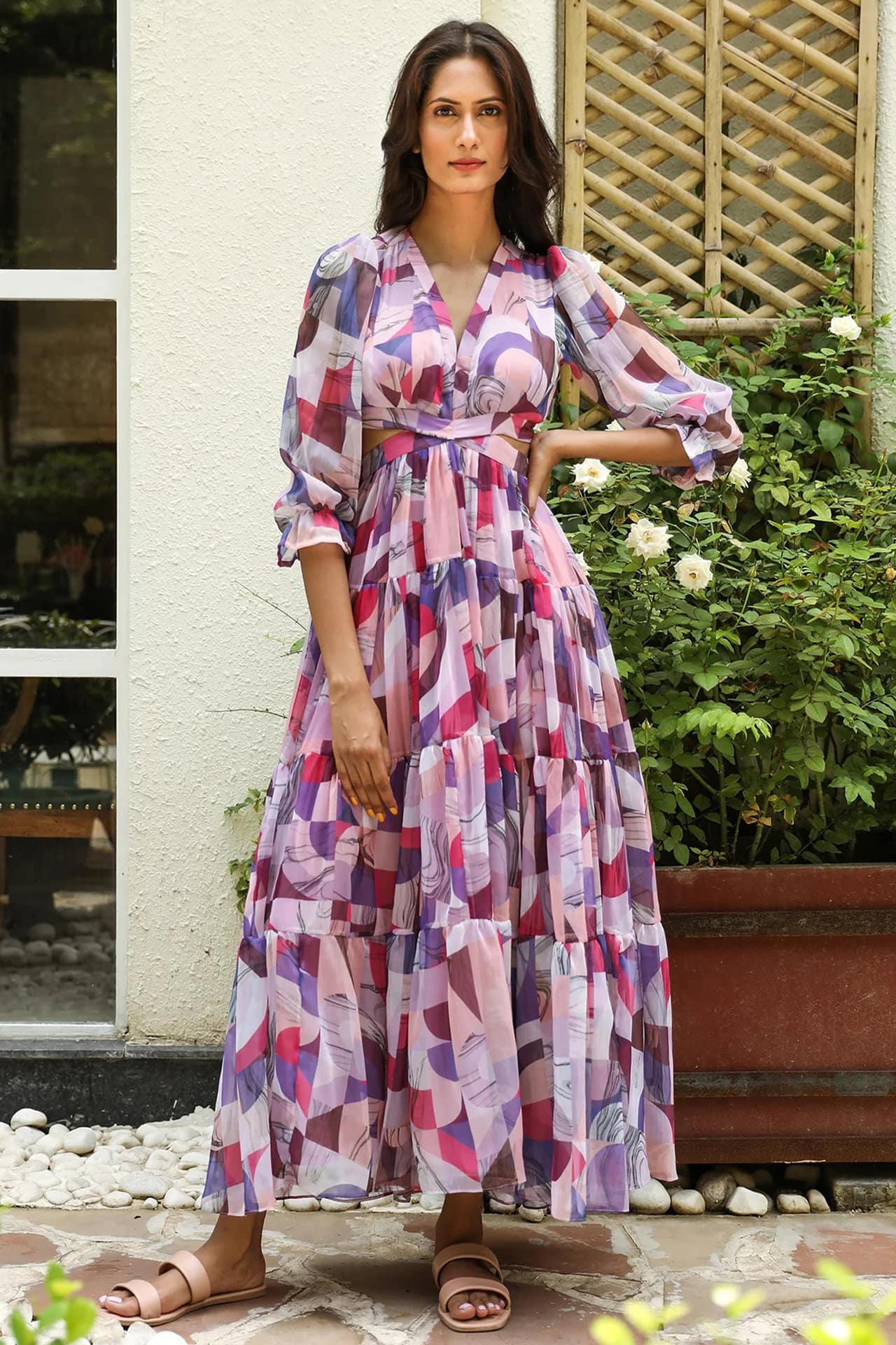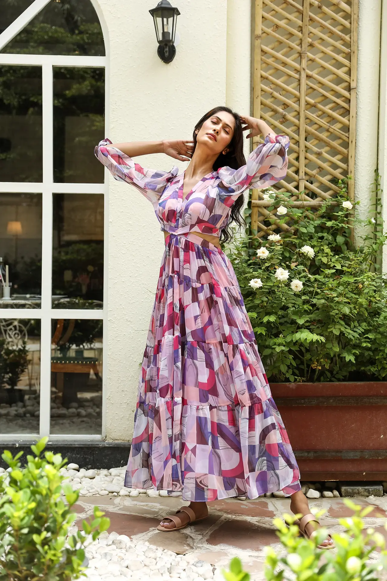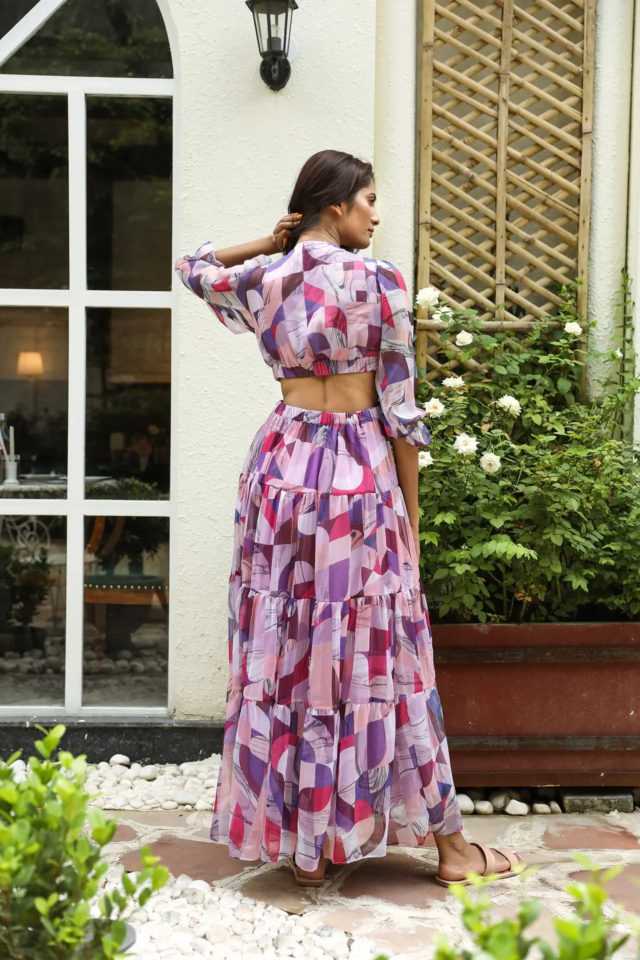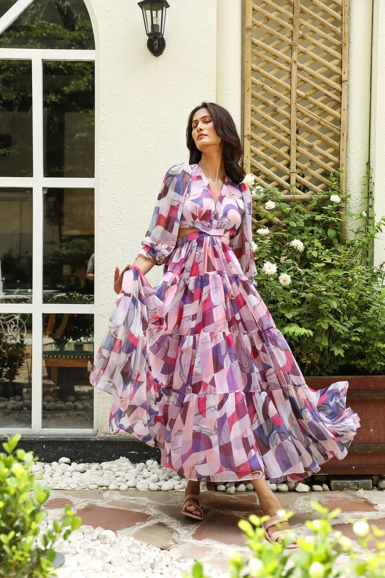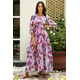 Tiered Chiffon Maxi Dress - Soft Red & Violet