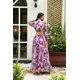 V neck-line, easy going flare and a cut detailing on the waist, a long dress handcrafted with sustainable chiffon fabric in our blush print in India by our talented artisans.