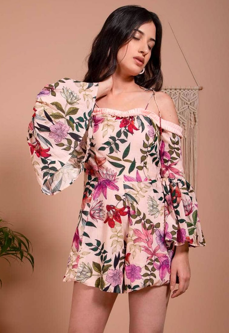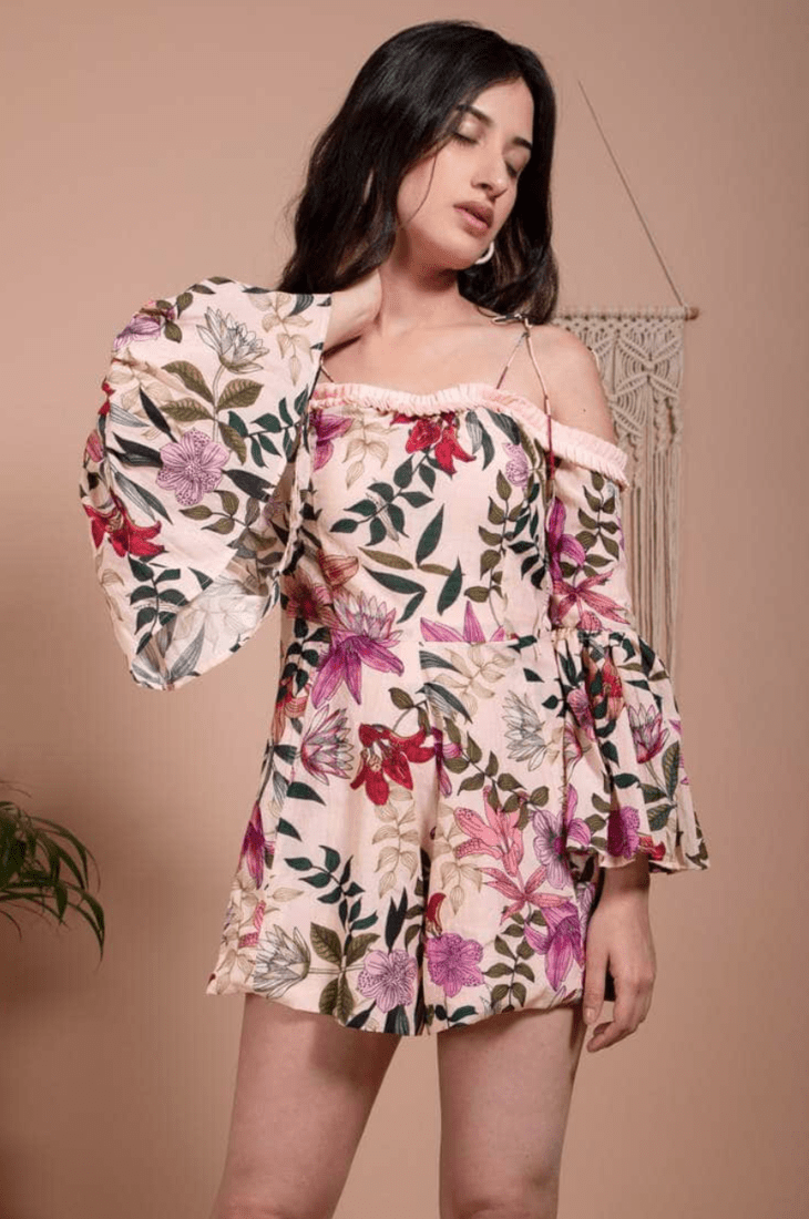 Floral Romper Longsleeve - Blush Pink