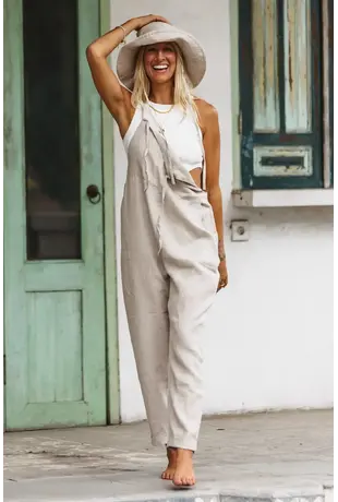 Linen Jumpsuit Beige - Jumpsuit For Women