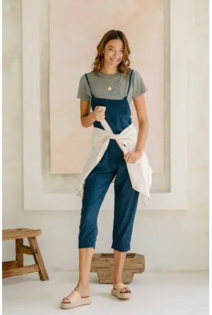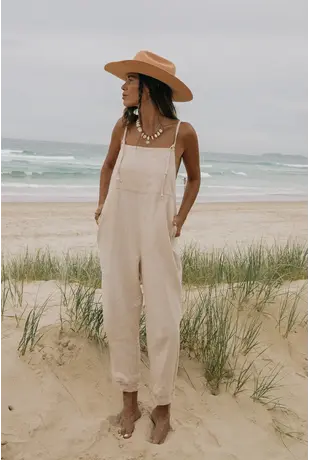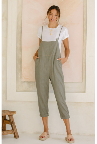 An OH SO COMFY stylish linen dungaree! These overalls have simple tie straps meaning you can style the height to sit how you like on your specific body & personal style. They also sit at ankle grazer length with the ability to roll up to style and include x2 side pockets for those extra snacks, keys & all things fun...