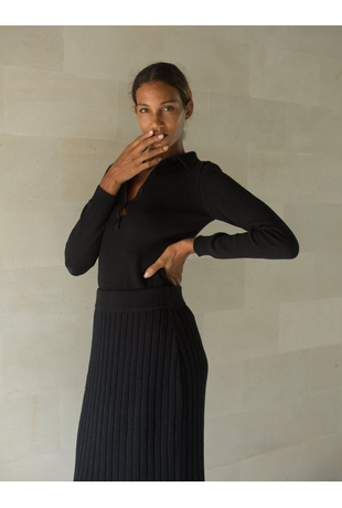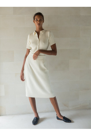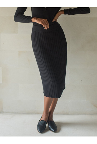 Designed for slipping on with ease, the Gael Knit Skirt features a relaxed fit with an elastic waistband. Crafted in a two tone rib technique, reminiscent of classic styling with a thoroughly contemporary feel. Complete the look with the Chopin Knit or the Berner Neck Sweater.