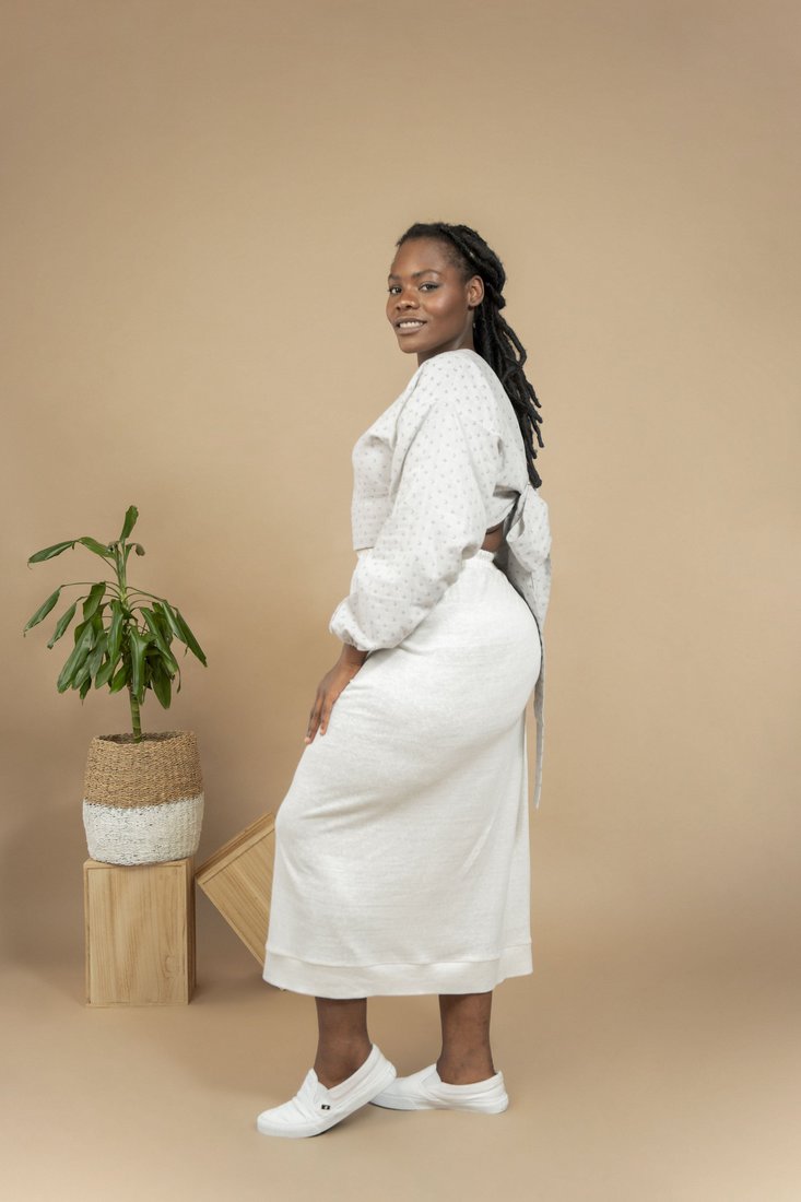 Seashell - Model is 168 cm tall and wears size XXL with a custom XL waist