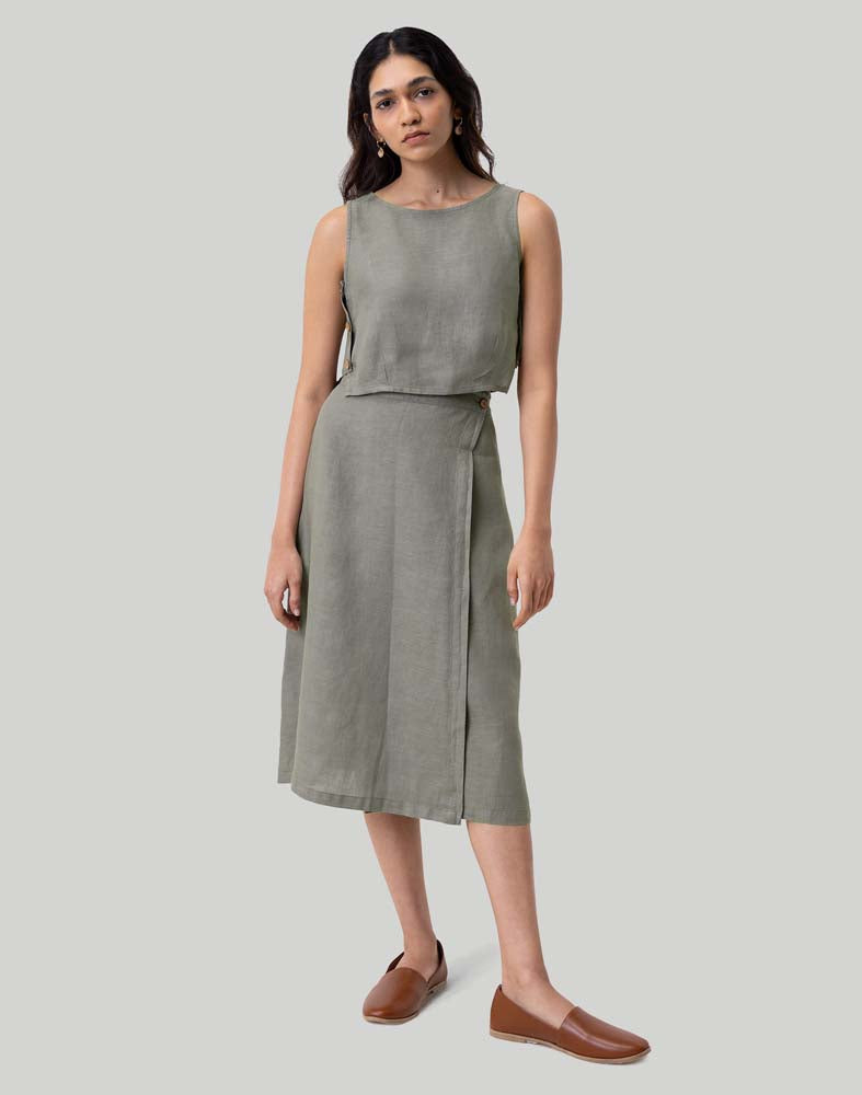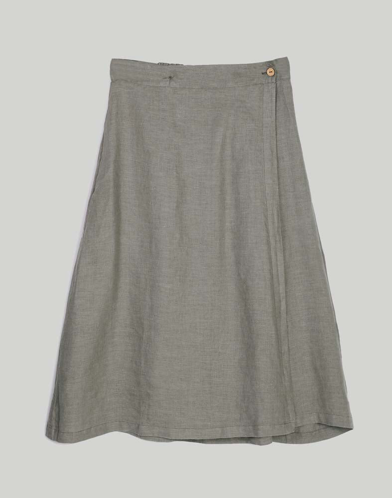 This midi skirt features an overlapping front with buttons at the side, adding a touch of old school to your wardrobe.