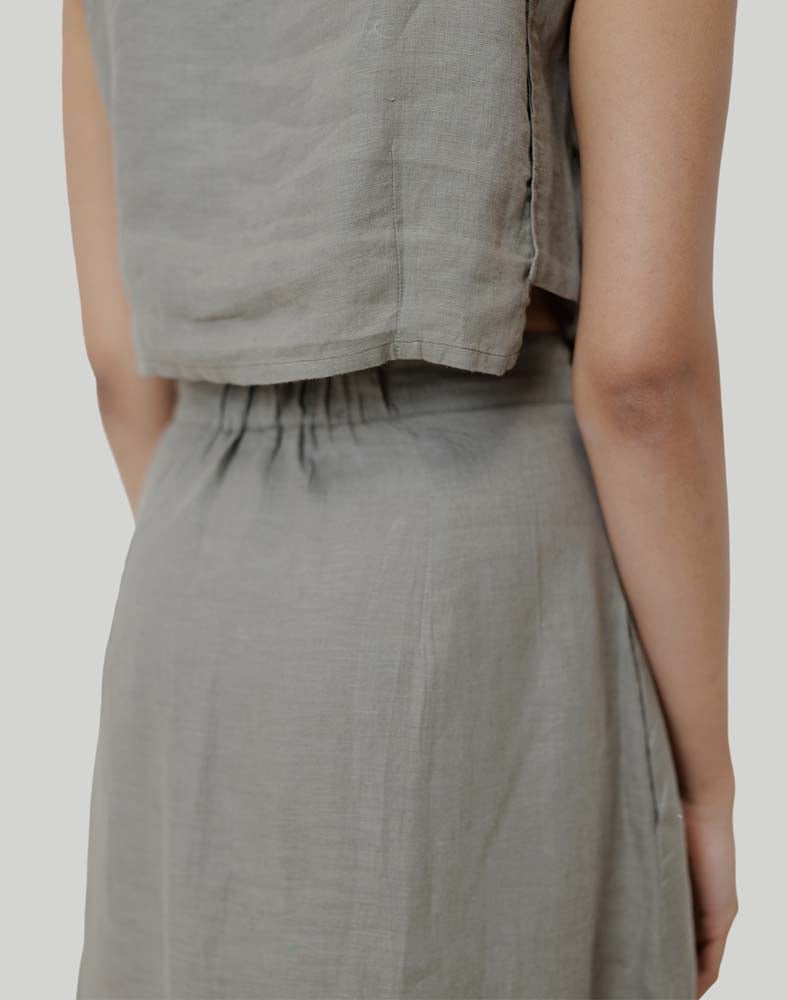 There is no use of elastic, virgin polyester or other non-biodegradable materials in this garment. Our sewing thread is also 100% biodegradable cotton.