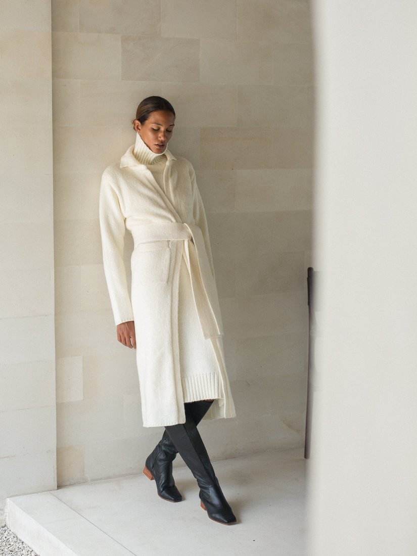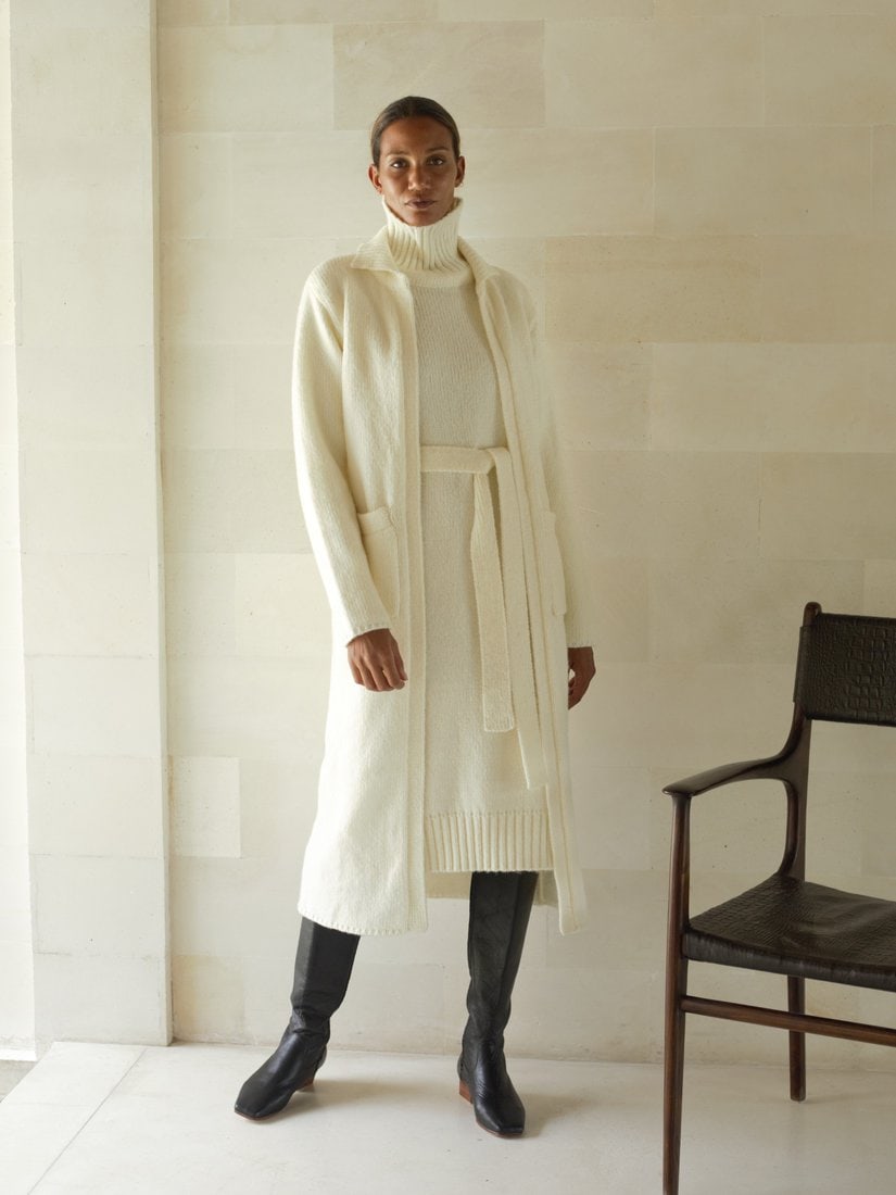 The Iman Mohair Coat in exceptionally soft and consciously sourced mohair features a slim fit for a clean and streamlined silhouette. Purposefully designed to be worn belted or loose, the Iman Coat pairs well with the Iman Sweater Dress.