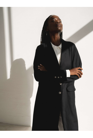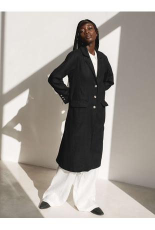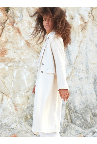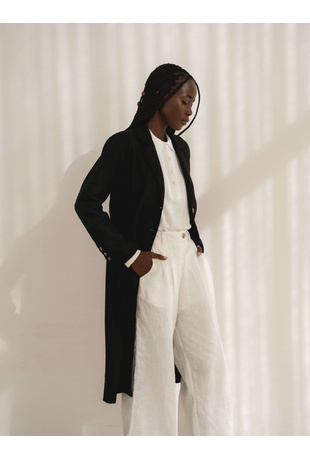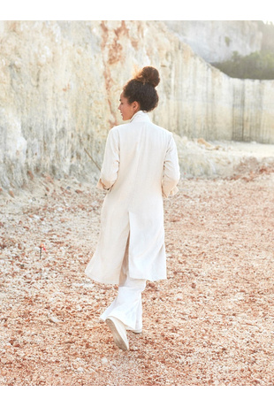 Inspired by the shapes of natural formations, the 01 Oxford Coat marries masculine forms with feminine functional tailoring. Made of lightweight cotton, designed for everyday wear and ideal for in between seasons. Styled with Arya Shirt and Linen Pleat Pant.