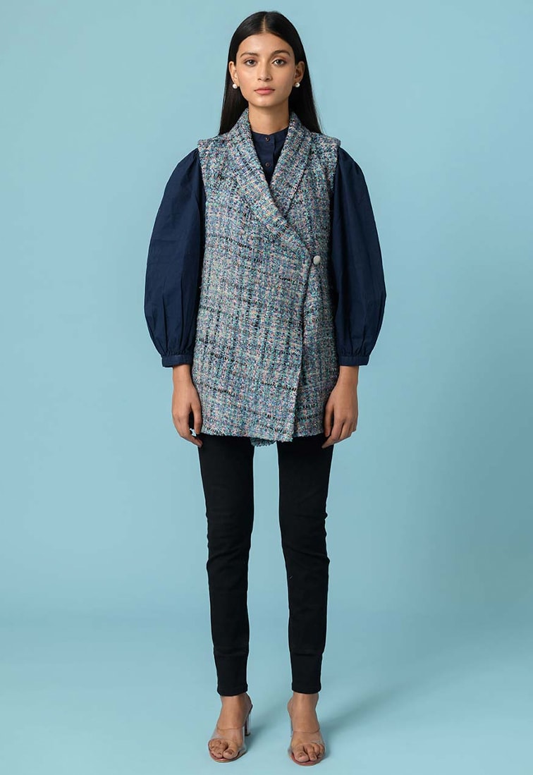 Their first collection features stunning easy-to-layer jackets for an effortlessly chic look. Made from a highly textured and unique cotton jacquard fabric, the weavers handloom these textiles in their homes in Punjab.