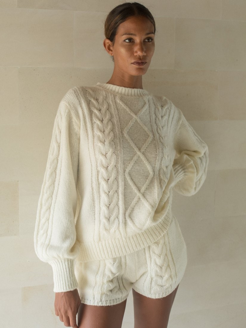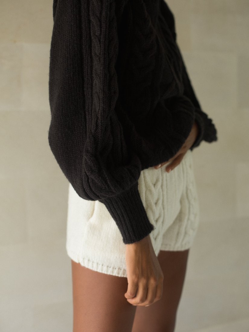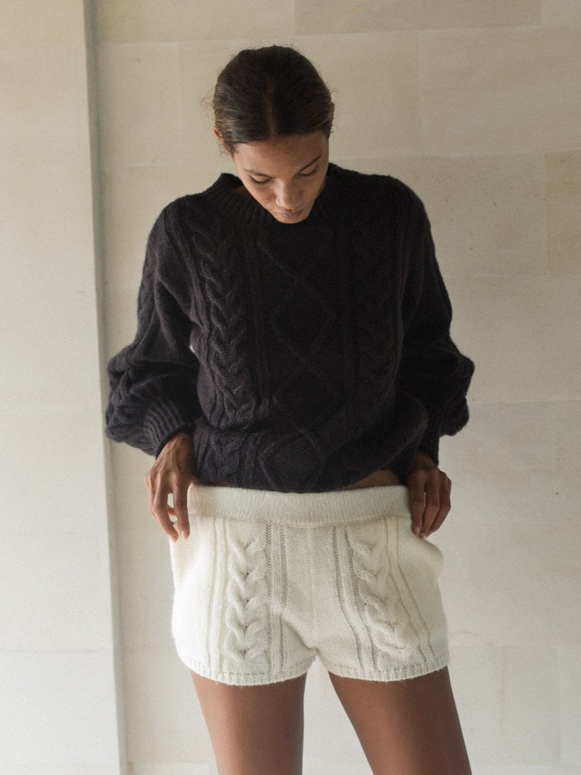 A versatile addition to the minimalist wardrobe, the Cecile Mohair Shorts marry comfort and style. Crafted from 100% mohair, the Cecile Shorts boast a relaxed fit, cable knit plaiting detail at the front and two side seam pockets. Designed to be worn both in and outside of the house.