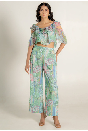Floral Set - Ruffle Top & Wide Leg Pants
