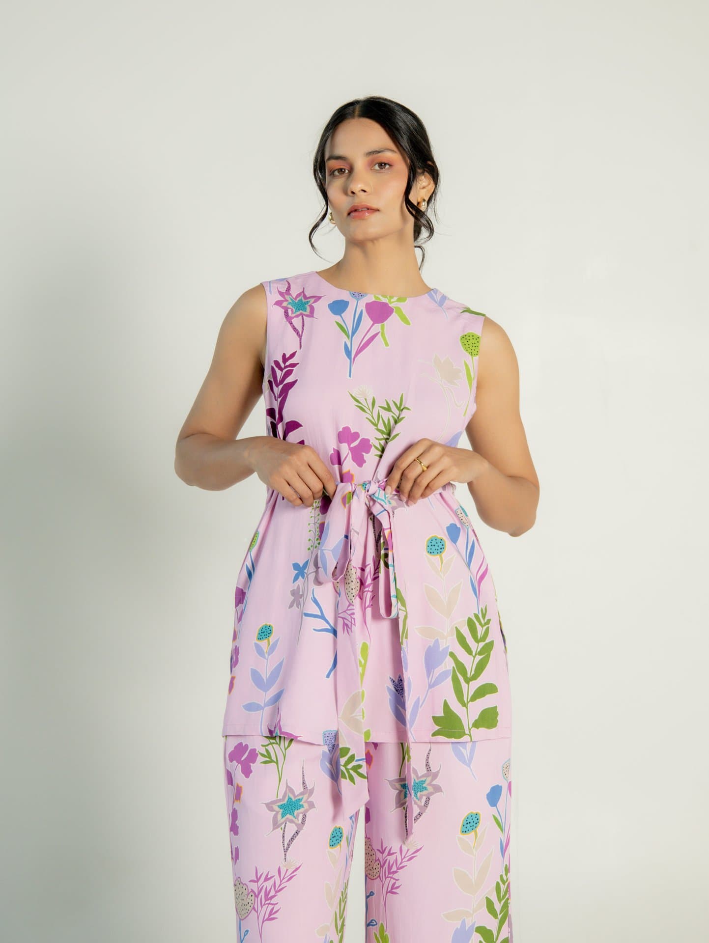 Two piece straigth fit set with tie up straps on