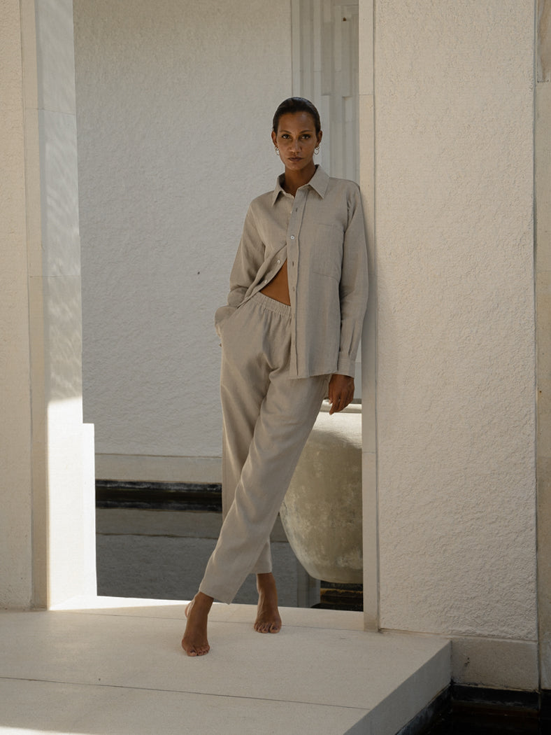 Our season-less, straight leg linen pant is equally at home worn alone with our Linen Oversized Men's Shirt or t-shirt, or as a suit with our Linen Blazer.