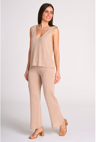Wide-leg trousers in light viscose with perforated knitted pattern.