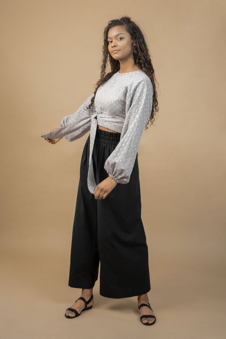 The organic cotton is grown in Benin, Tanzania and India. The fabric is designed in Paris, France. Spinning, weaving, dyeing and washing of the fabric is done in La Loire, France. The fabric is GOTS certified, which means it includes strict environmental and social criteria for operations along the entire supply chain.
