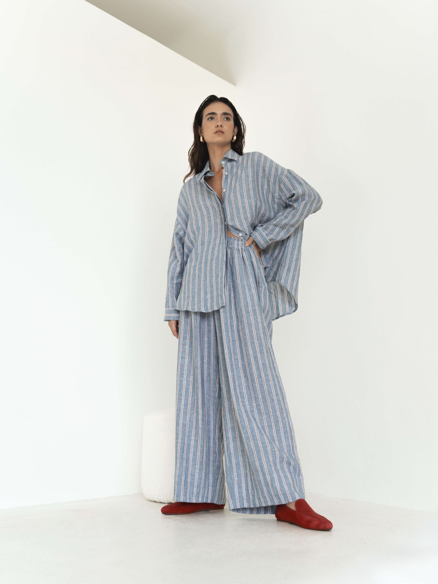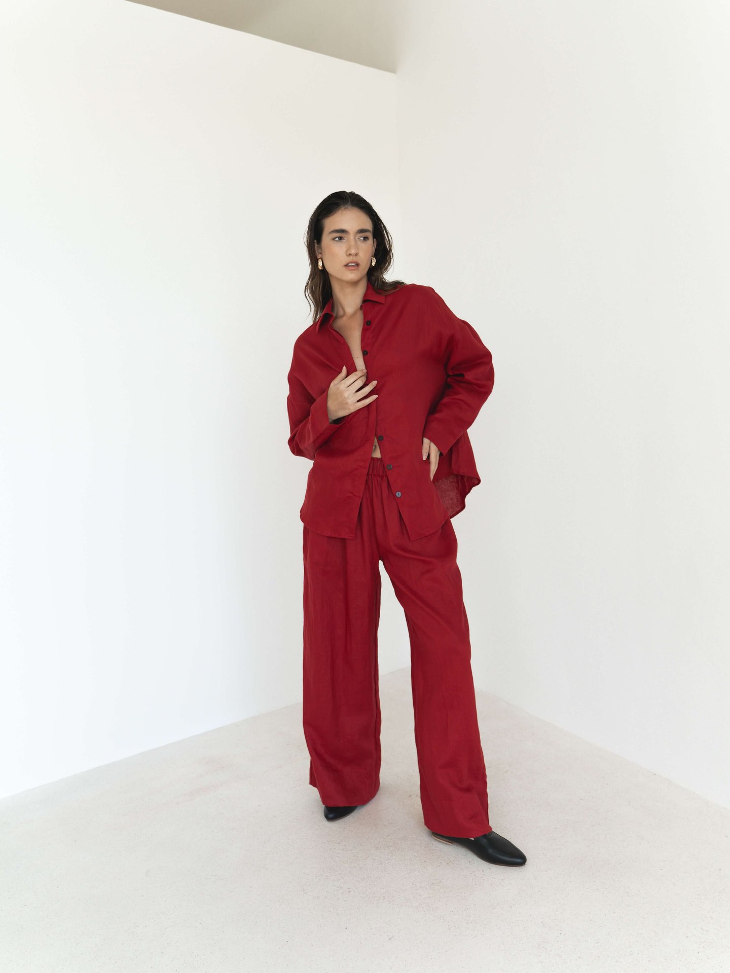 The Wide Leg Linen Pants are an adaptable addition to your wardrobe. Responsibly constructed from pure linen. A timeless appeal with an elastic waist, side pockets and a wide hem. Pair with the Oversized Linen Men's Shirt Shirt and Love78 Leather Loafer.