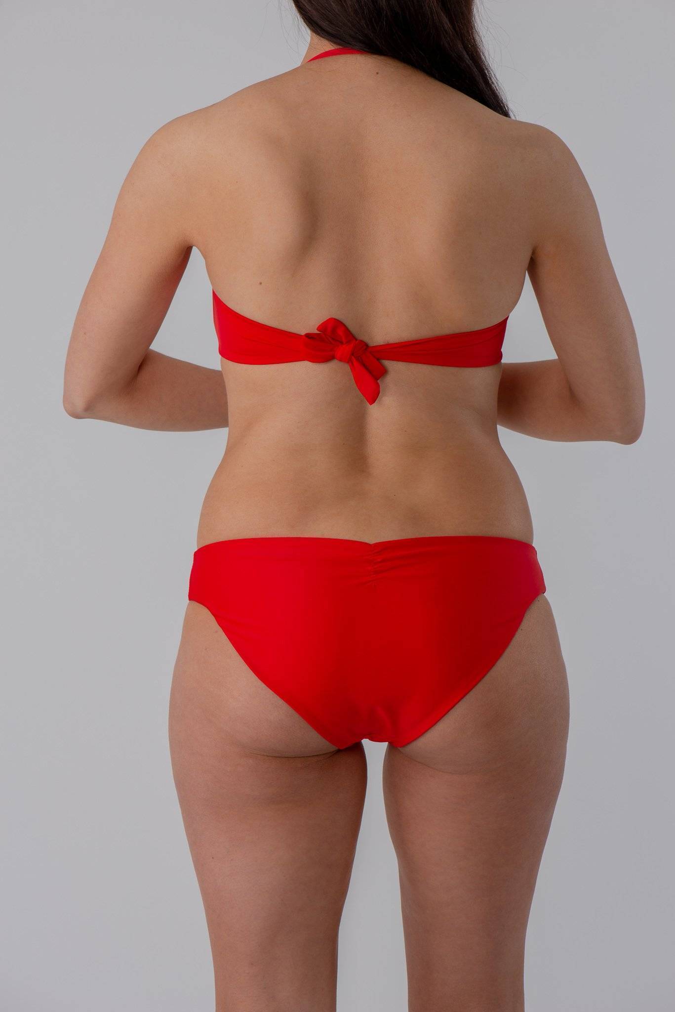 Add a touch of timeless elegance to your next vacay with Amna, our lovely bandeau-cut bikini top made of the finest Italian fabrics of sustainably regenerated ECONYL® yarn. Amna has a striking V-shaped gold plunge neckline and detachable halter-neck ties. This luxurious bikini top creates a comfortable feeling that lasts.