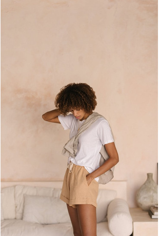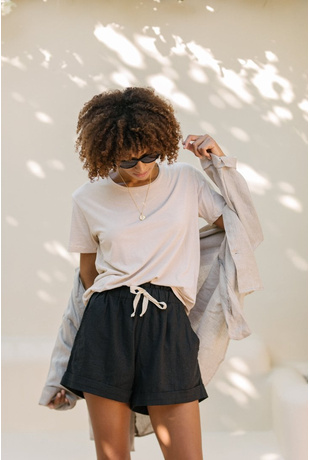 Many moons ago the founder Rosie heard the first time about the possibility of dying apparel with nothing more than plants. It’s an age-old process. Three types of leaves are picked, dried in huge scale roasters before being crushed into tiny granules and mixed with water. These primary hues are then mixed together to form unique shades - entirely toxic-free. Their clothing collection is made from organic cotton and linen. The production of flax (linen) and organic cotton requires considerably less water and chemicals than traditional cotton.