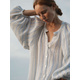 Our Oversized Blouse crafted from pure crinkle linen features mandarin collar and billowed sleeves that creates an air of softness. Pair with denim or our Linen Crinkle Shorts.