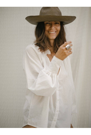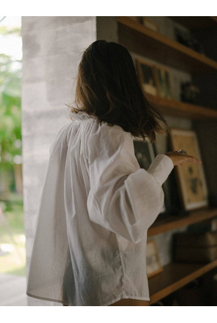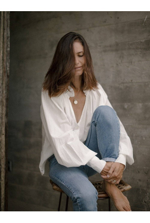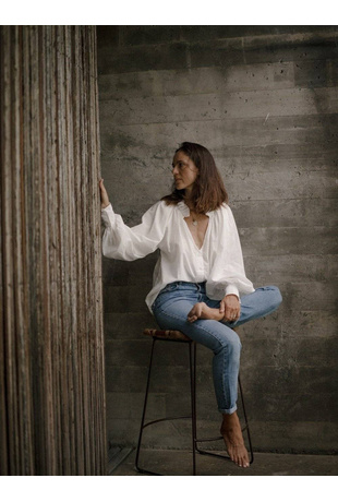 Find the romance in solitude, invite self reflection and honesty in our organic cotton blouse with deep V neckline.