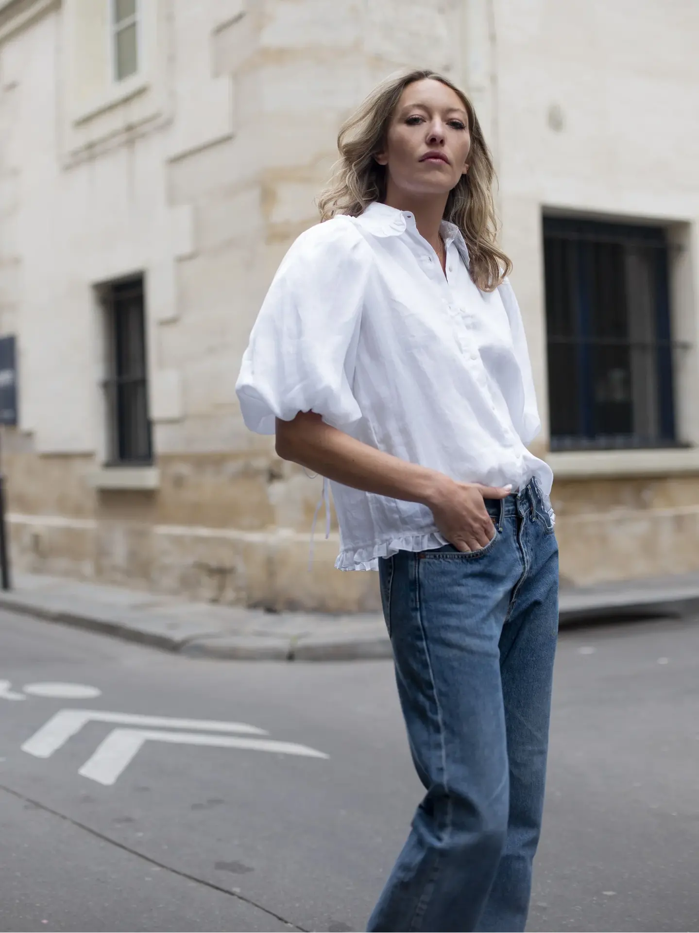 Ruffle Short Sleeve Blouse - White Puff Sleeve