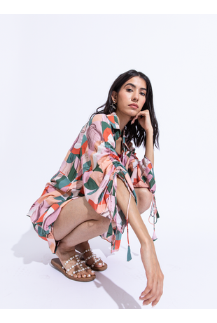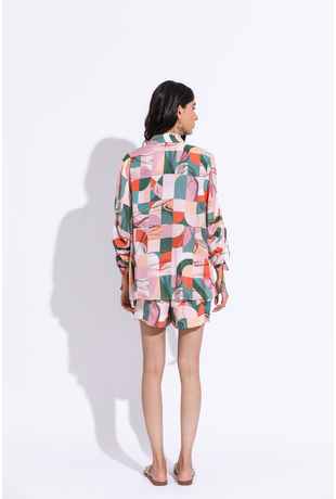 This bright teal poplin shirt made from organic cotton will have all eyes on you. Featuring a pretty sleeve detail and a little tie up, pair this with matching pants, jeans or shorts for a good time.