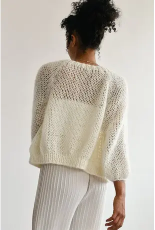 The Airy Mohair Bomber — a lightweight open-front raglan cardigan, loose-knit with super soft and luxurious kid mohair that feels like being wrapped into a squishy, puffy cloud.