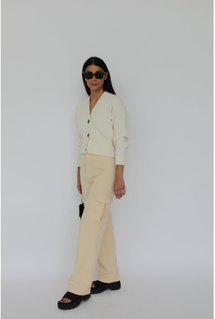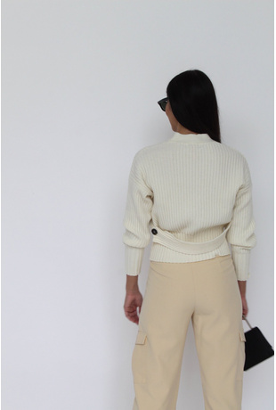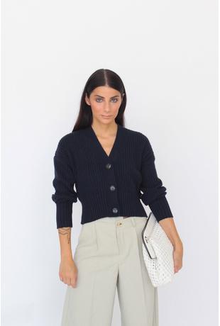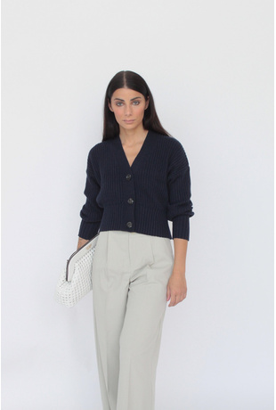 Ribbed cardigan with button closure and detail on the back.