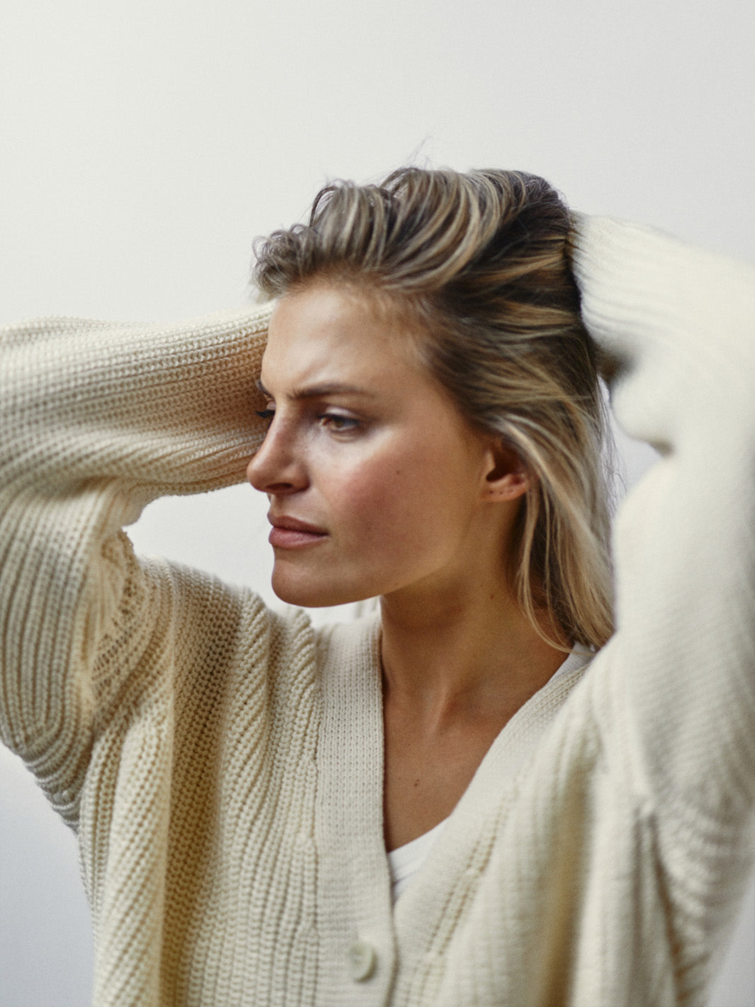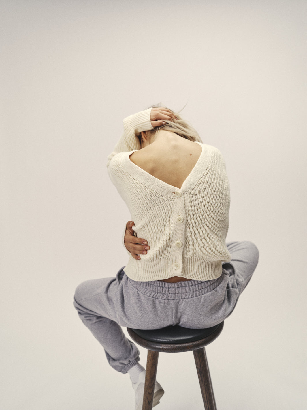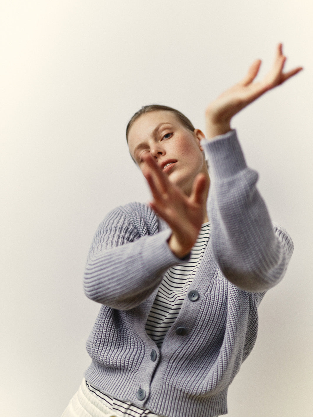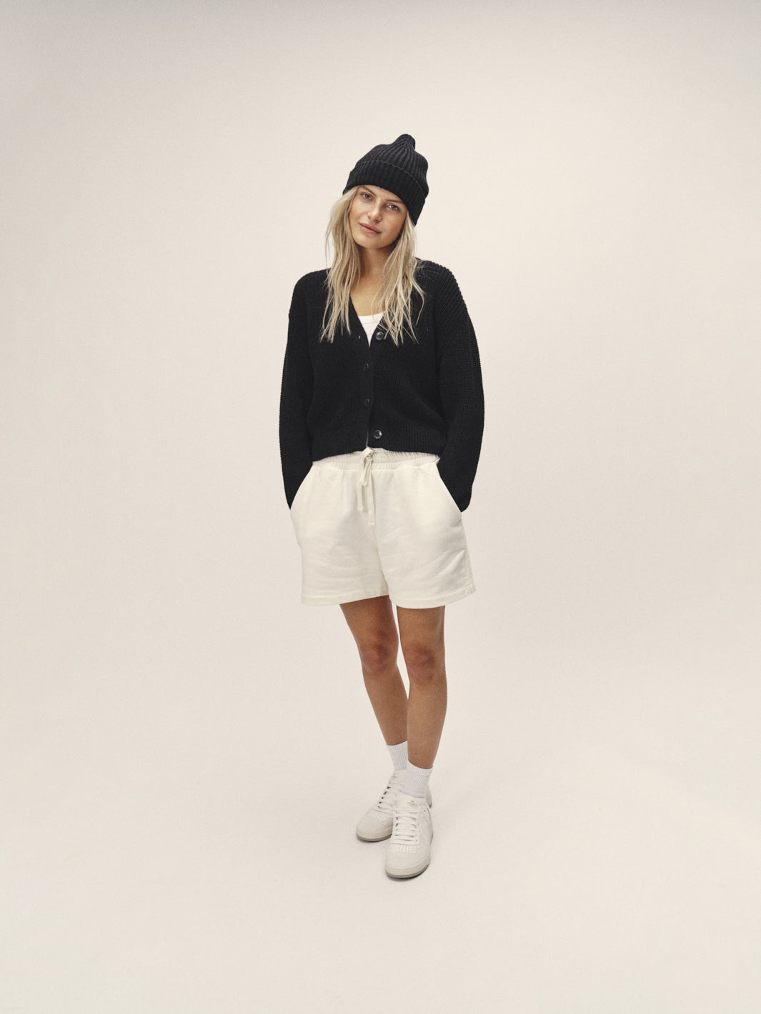 Description: Made from soft and sustainable cotton, our short cardigan is a real favourite. The ribbed structure and the shape lend casualness, no matter how you combine it. Cosy for at home, classy with a top or striped shirt---always a favourite look! The special detail are the pretty buttons made of stone nut. We love!