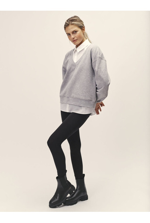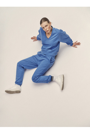Description: The sweatshirt made of soft organic cotton is a beautiful feminine version due to the deep V-neck. It is therefore suitable as a loungewear item but also feminine combined with a blouse for many occasions. The fit is relaxed and loose. Our small WOTE logo is on the back.