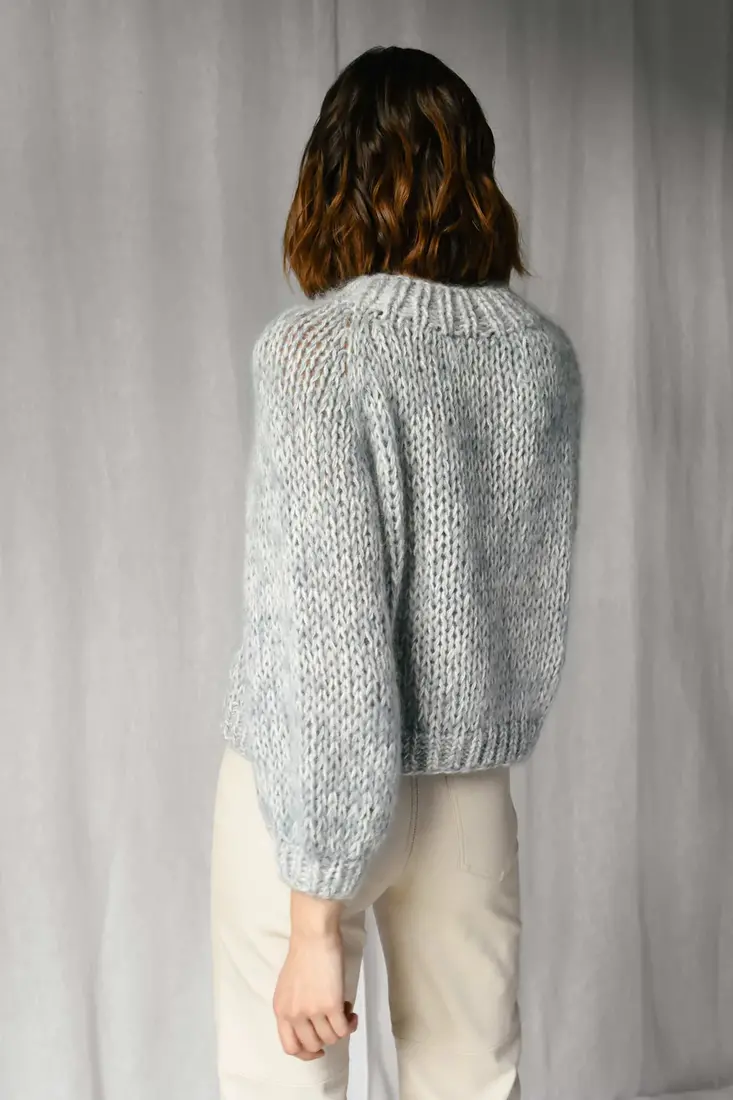 Designed to flatter all silhouettes with its wide boxy fit, slightly cropped body and wrist-exposing voluminous balloon sleeves. Made to order in 5 colorways — 2 solid colors and 3 with a subtle melange feel. Here shown in Ozone mix, a mute pastel blue.