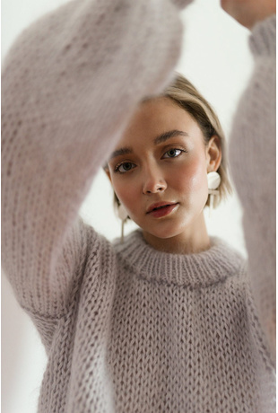 Chunky pullover sweater, hand-knitted in fluffy kid mohair that feels like being inside a soft, puffy cloud.