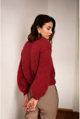 Chunky pullover sweater, hand-knitted in fluffy kid mohair that feels like being inside a soft, puffy cloud.